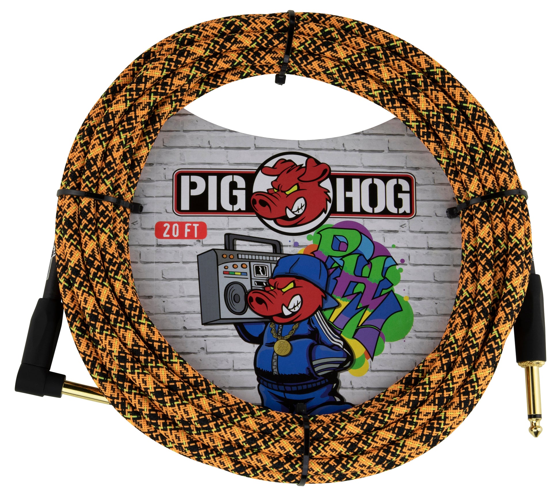 Pig Hog 20ft Instrument Cable (Right angle) - Orange Graffiti