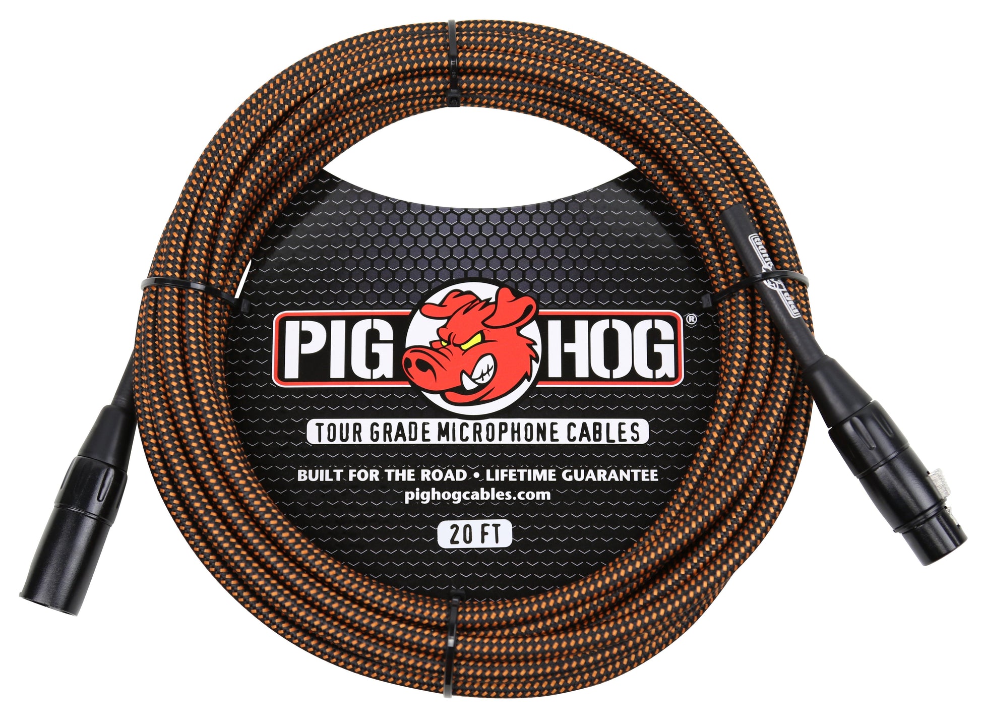 Pig Hog Black & Orange Woven Mic Cable, 20ft XLR