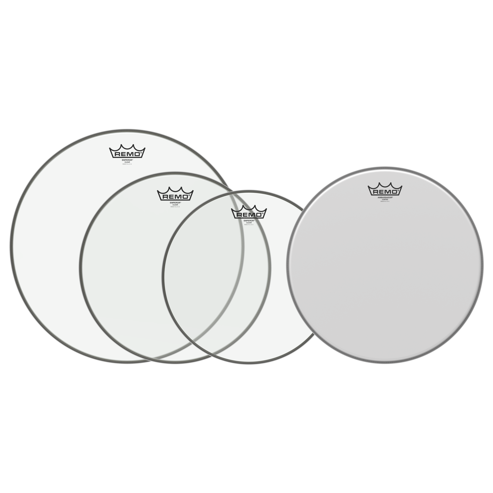 Remo Clear Emperor Rock Pro Pack - 12", 13", 16" w/ Bonus 14" Coated Ambassador